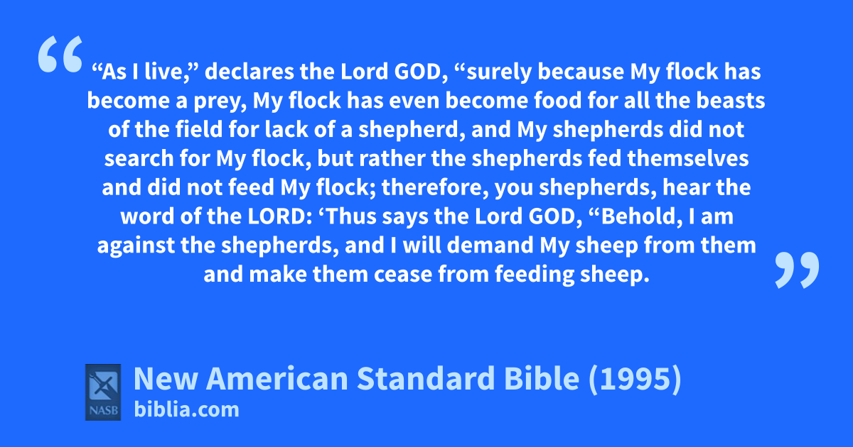 10 ‘Thus says the Lord God, “Behold, I am aagainst the shepherds, and I will demand My 1sheep 2from them and make them bcease from feeding 1sheep. So the shepherds will not 3feed themselves anymore, but I will cdeliver My flock from their mouth, so that they will not be food for them.” ’ ”