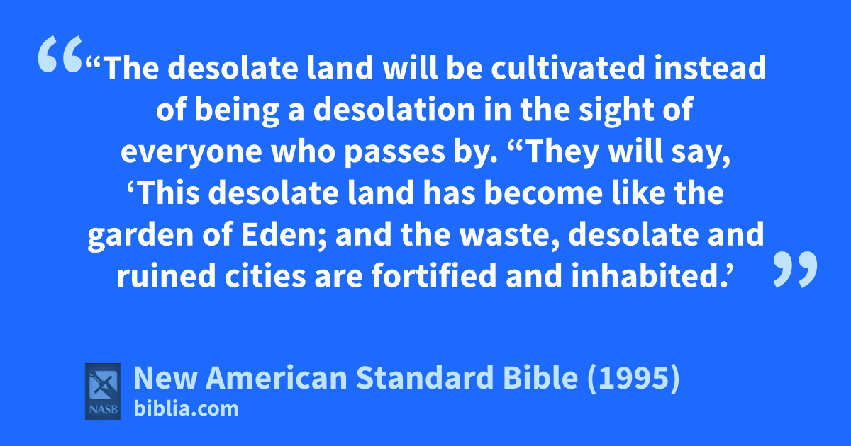 35 “They will say, ‘This desolate land has become like the agarden of Eden; and the waste, desolate and ruined cities are fortified and inhabited.’