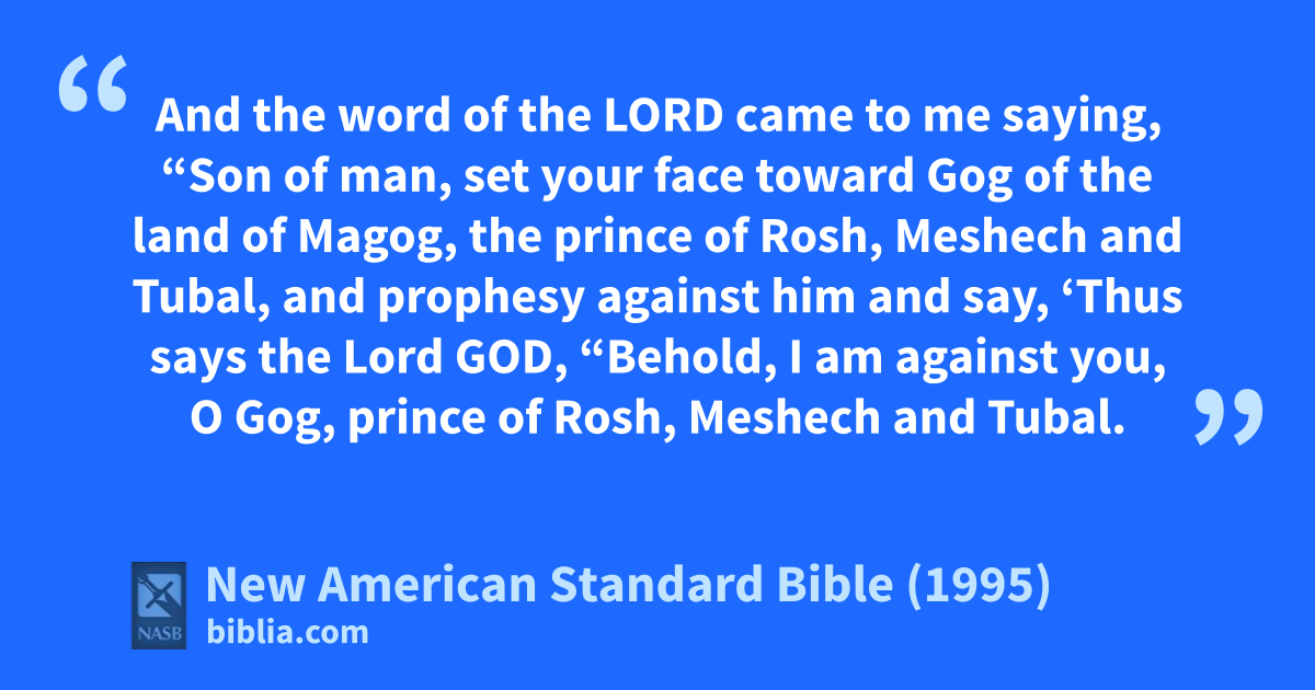 3 and say, ‘Thus says the Lord 1God, “Behold, I am against you, O Gog, 2prince of Rosh, Meshech and Tubal.