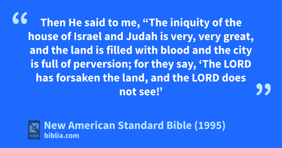 9 Then He said to me, “The iniquity of the house of Israel and Judah is very, very great, and the land is afilled with blood and the city is bfull of perversion; for cthey say, ‘The Lord has forsaken the land, and the Lord does not see!’