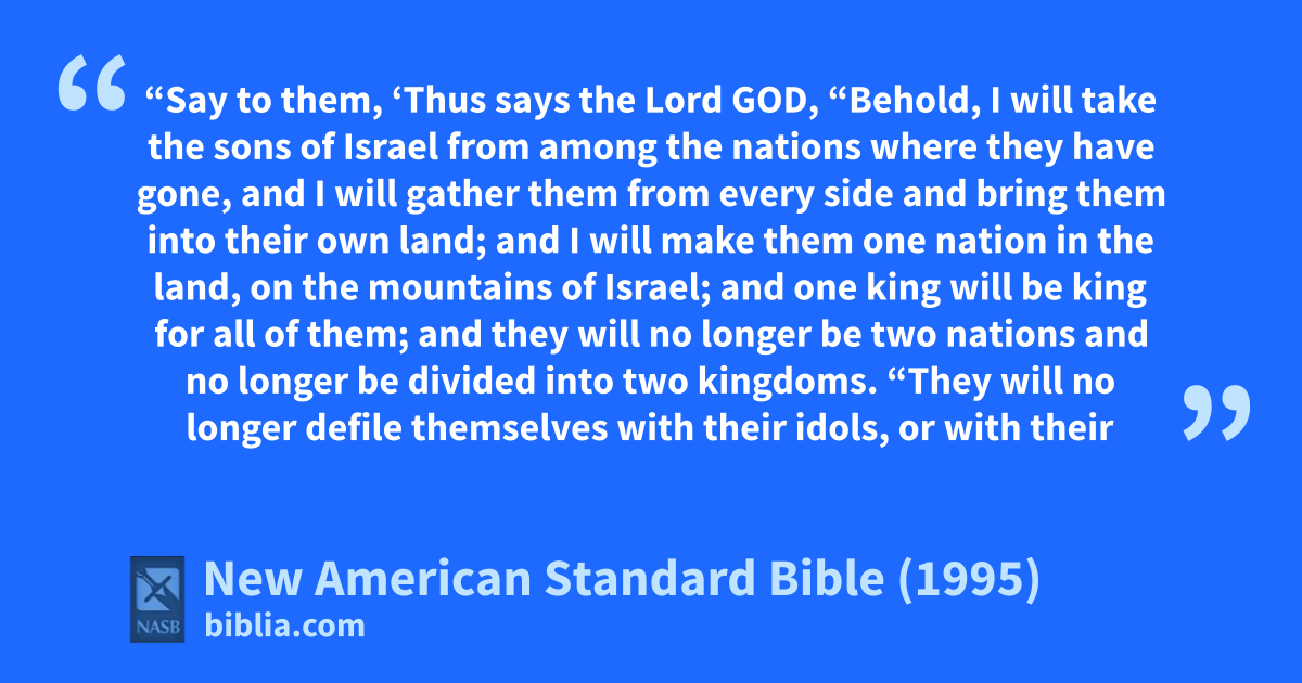 22 and I will make them aone nation in the land, on the mountains of Israel; and bone king will be king for all of them; and they will no longer be two nations and no longer be divided into two kingdoms.