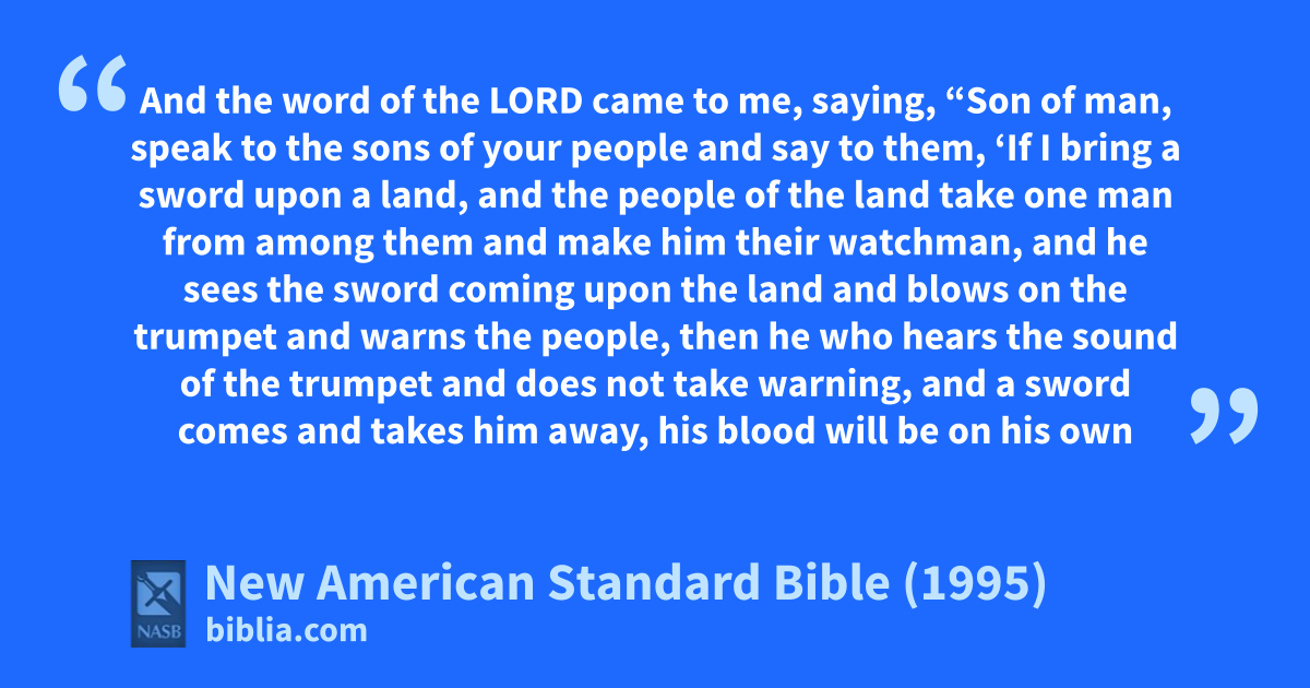 2 “Son of man, speak to the asons of your people and say to them, ‘If I bring a sword upon a land, and the people of the land take one man from among them and make him their watchman,