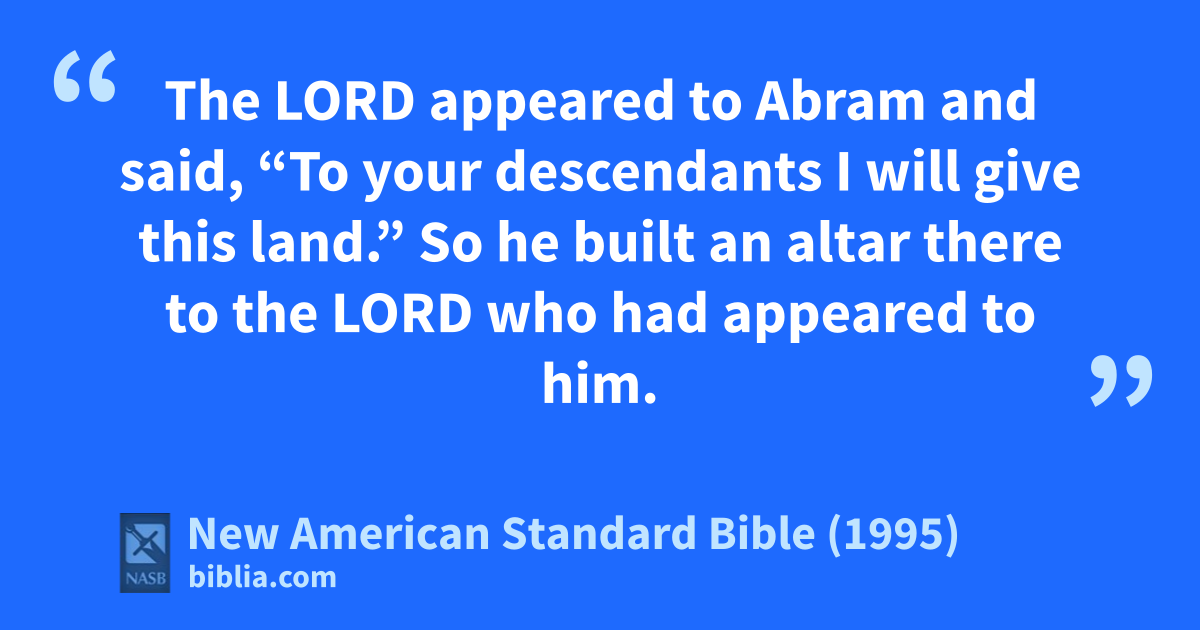 7 The Lord aappeared to Abram and said, “bTo your 1descendants I will give this land.” So he built can altar there to the Lord who had appeared to him.