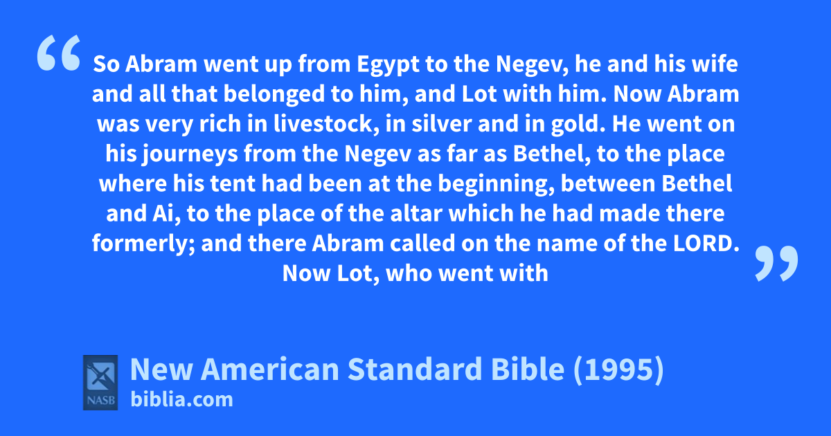 1 So Abram went up from Egypt to athe 1Negev, he and his wife and all that belonged to him, and Lot with him.