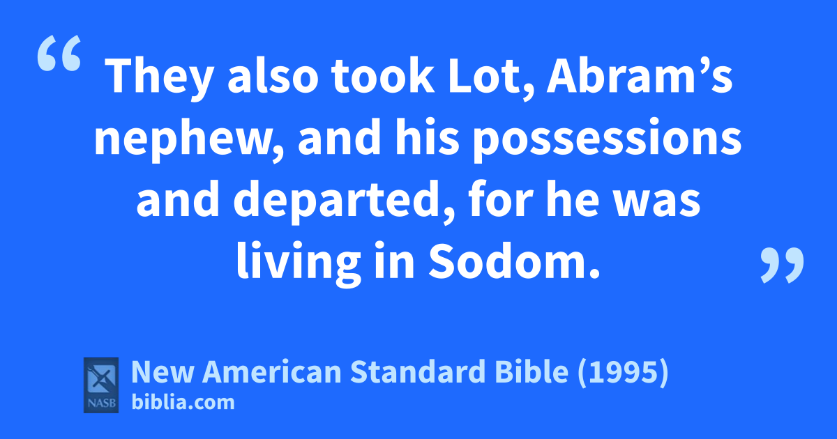 12 They also took Lot, aAbram’s nephew, and his possessions and departed, bfor he was living in Sodom.