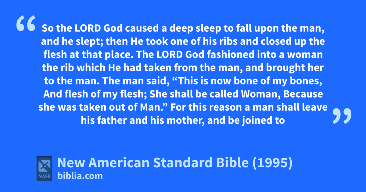 21 So the Lord God caused a adeep sleep to fall upon the man, and he slept; then He took one of his ribs and closed up the flesh at that place.