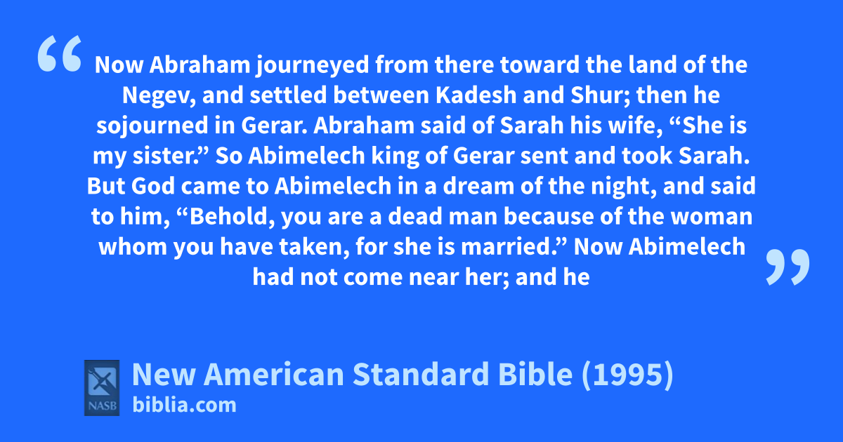 2 Abraham said of Sarah his wife, “aShe is my sister.” So bAbimelech king of Gerar sent and took Sarah.