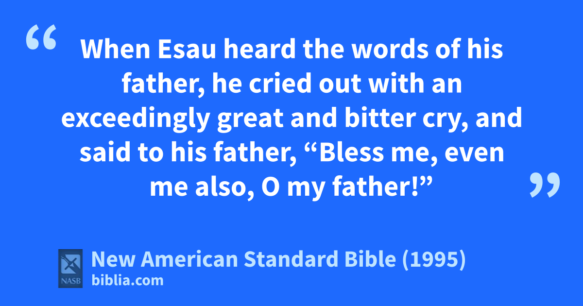 34 When Esau heard the words of his father, ahe cried out with an exceedingly great and bitter cry, and said to his father, “Bless me, even me also, O my father!”