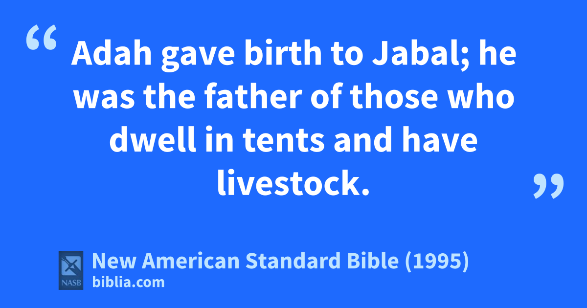 20 Adah gave birth to Jabal; he was the father of those who dwell in tents and have livestock.