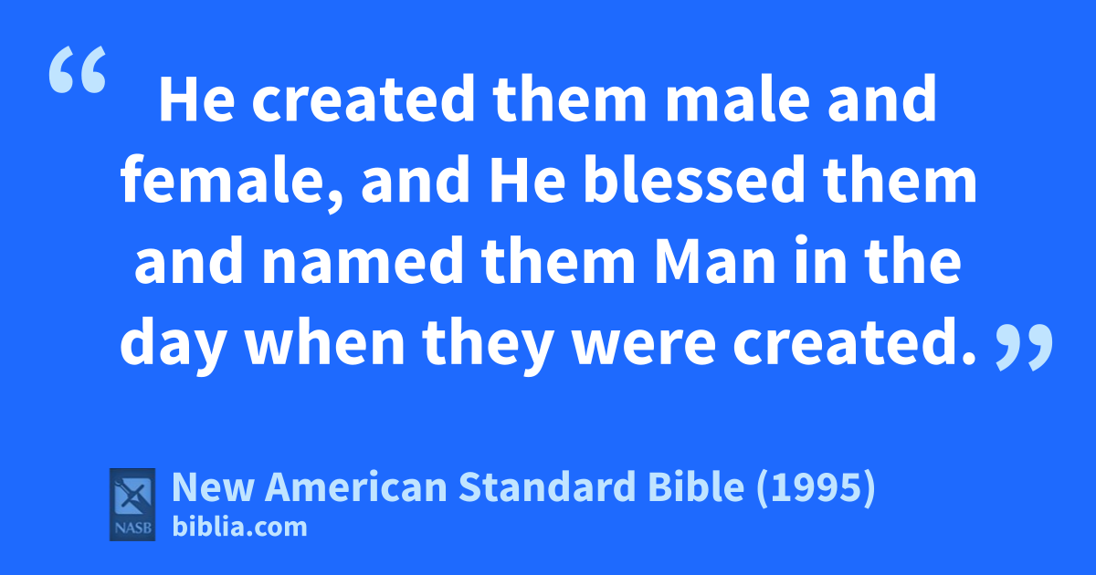2 He created them amale and female, and He bblessed them and named them 1Man in the day when they were created.