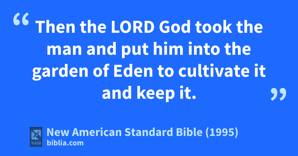 15 Then the Lord God took the man and put him into the garden of Eden to cultivate it and keep it.