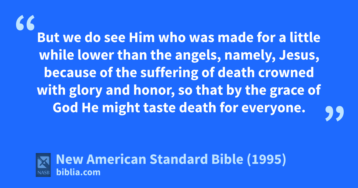9 But we do see Him who was amade 1for a little while lower than the angels, namely, Jesus, bbecause of the suffering of death ccrowned with glory and honor, so that dby the grace of God He might etaste death ffor everyone.