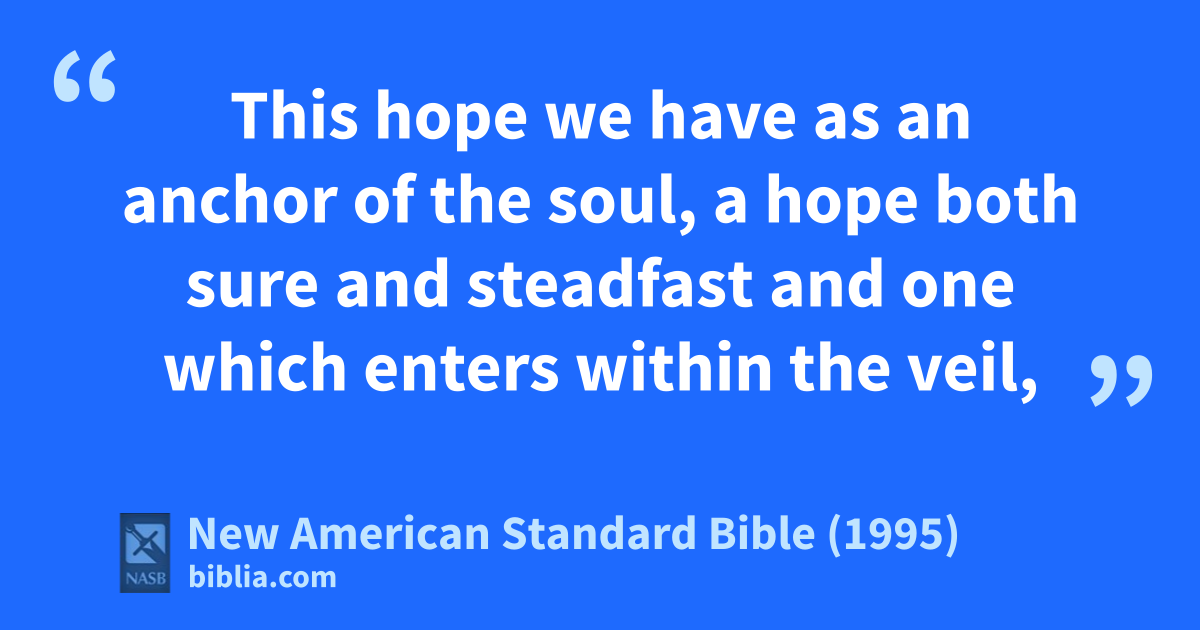 19 1This ahope we have as an anchor of the soul, a hope both sure and steadfast and one which benters 2within the veil,