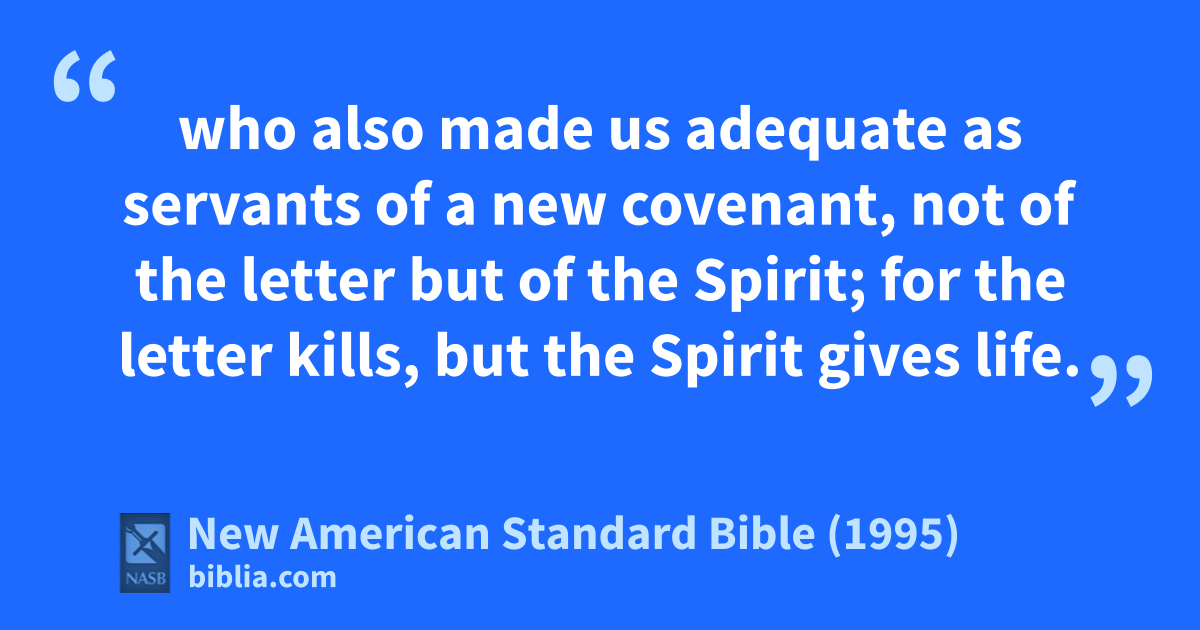 6 who also made us adequate as aservants of a bnew covenant, not of cthe letter but of the Spirit; for the letter kills, but dthe Spirit gives life.