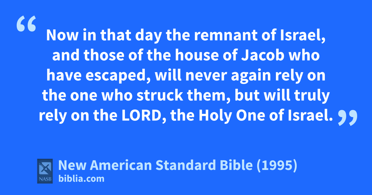 20 Now in that day the aremnant of Israel, and those of the house of Jacob bwho have escaped, will never again rely on the one who struck them, but will truly crely on the Lord, the Holy One of Israel.