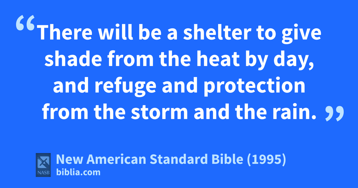6 There will be a ashelter to give shade from the heat by day, and refuge and 1protection from the storm and the rain.