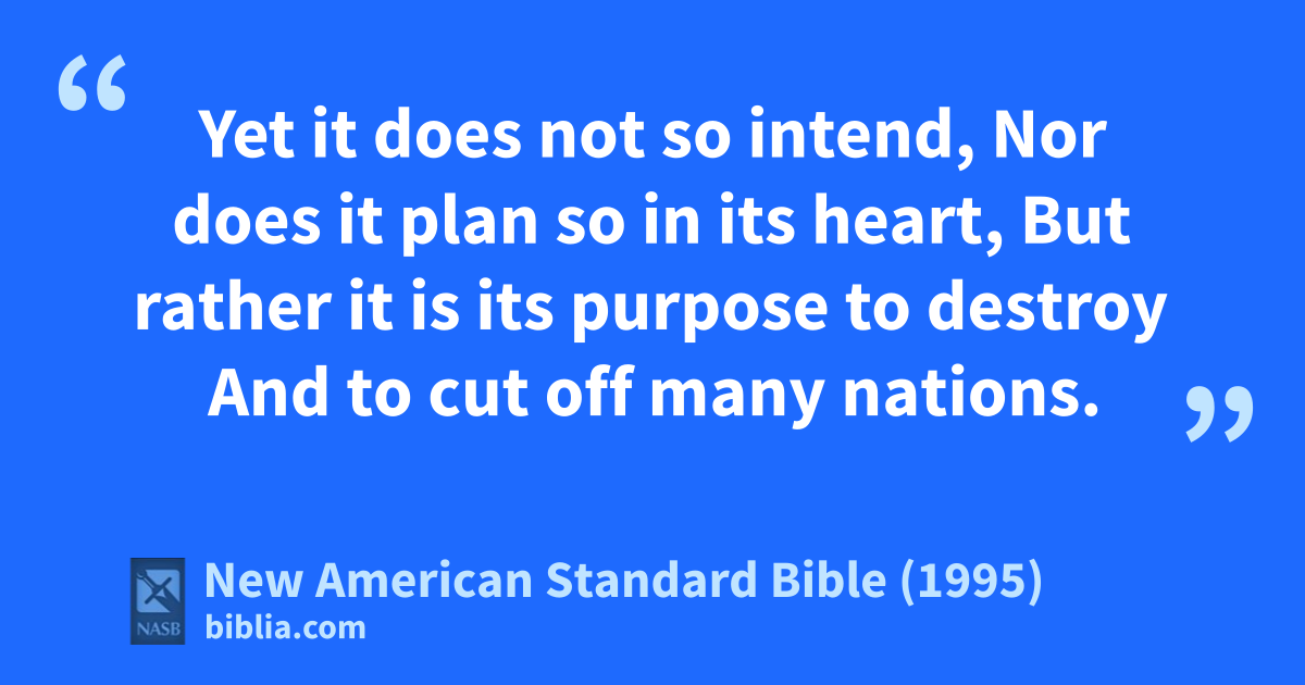 12 So it will be that when the Lord has completed all His awork on Mount Zion and on Jerusalem, He will say, “I will 1punish the fruit of the arrogant heart of the king of Assyria and bthe pomp of 2his haughtiness.”