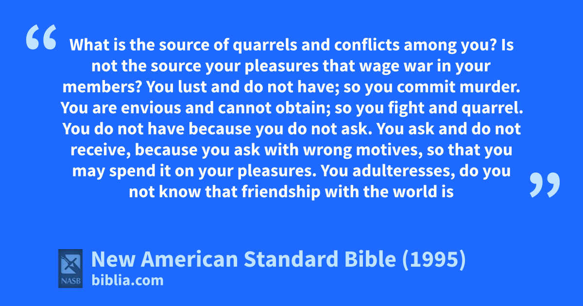 1 1What is the source of quarrels and aconflicts among you? 2Is not the source your pleasures that wage bwar in your members?