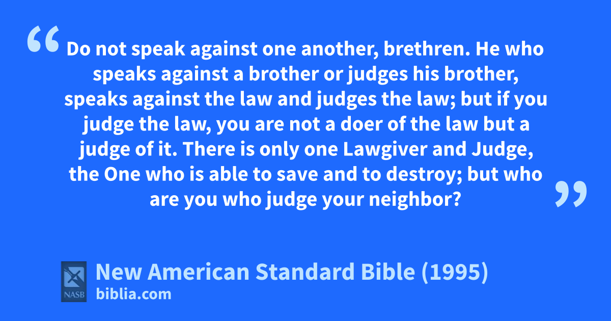 11 aDo not speak against one another, bbrethren. He who speaks against a brother or cjudges his brother, speaks against dthe law and judges the law; but if you judge the law, you are not ea doer of the law but a judge of it.