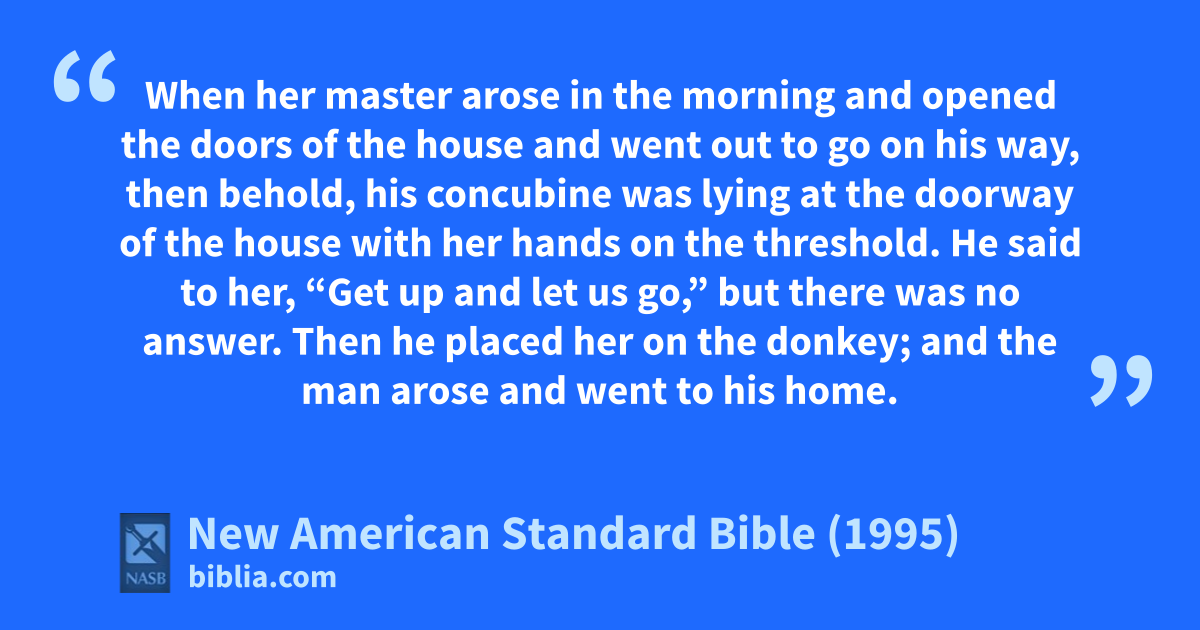 28 He said to her, “Get up and let us go,” abut there was no answer. Then he placed her on the donkey; and the man arose and went to his 1home.