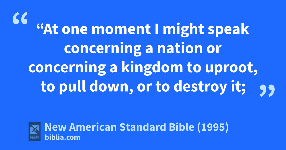 7 “At one moment I might speak concerning a nation or concerning a kingdom to auproot, to pull down, or to destroy it;
