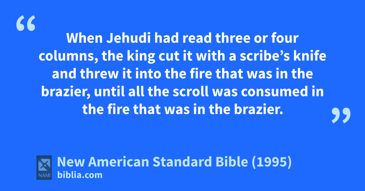 23 When Jehudi had read three or four columns, the king cut it with a scribe’s knife and athrew it into the fire that was in the brazier, until all the scroll was consumed in the fire that was in the brazier.