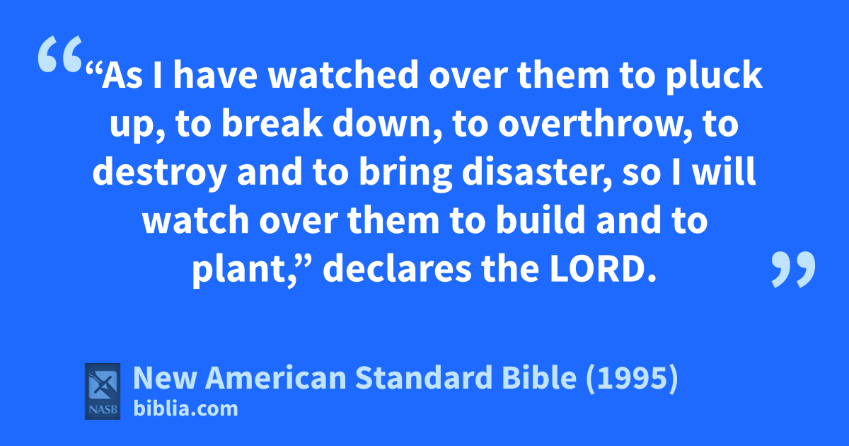 28 “As I have awatched over them to bpluck up, to break down, to overthrow, to destroy and to bring disaster, so I will watch over them to cbuild and to plant,” declares the Lord.