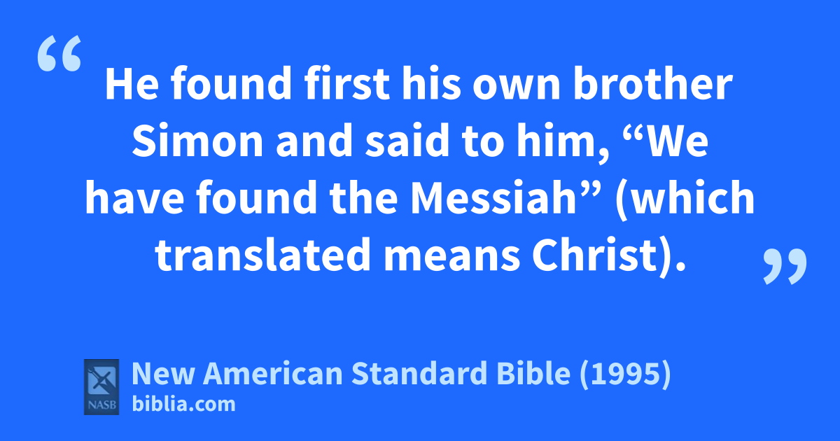 41 He * found first his own brother Simon and * said to him, “We have found the aMessiah” (which translated means 1Christ).