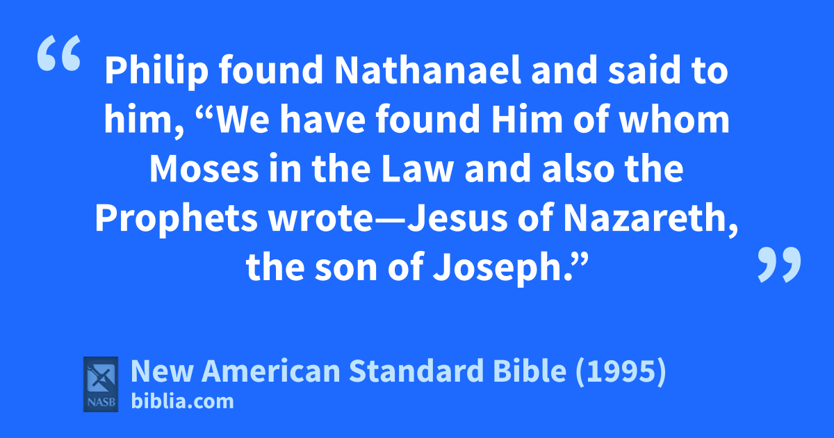 45 aPhilip * found bNathanael and * said to him, “We have found Him of whom cMoses in the Law and also cthe Prophets wrote—Jesus of dNazareth, ethe son of Joseph.”