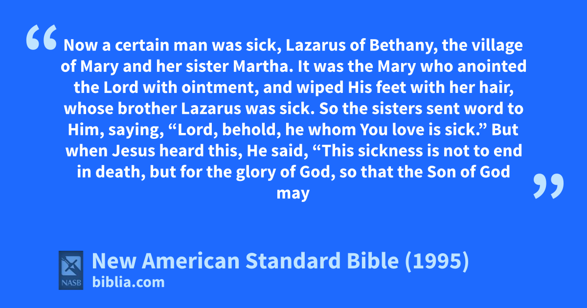 1 Now a certain man was sick, Lazarus of aBethany, the village of Mary and her sister bMartha.