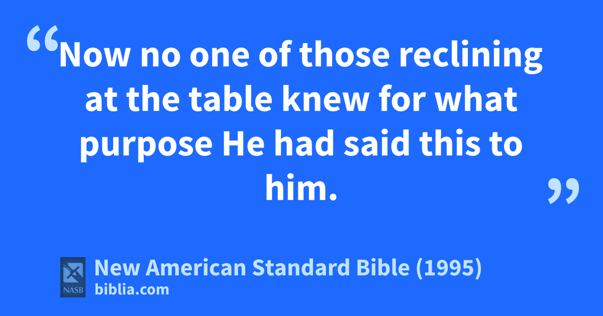 28 Now no one of those reclining at the table knew for what purpose He had said this to him.