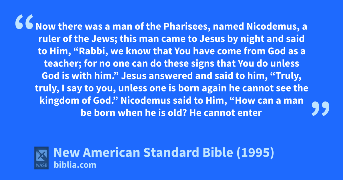 3 Jesus answered and said to him, “Truly, truly, I say to you, unless one ais born 1again he cannot see bthe kingdom of God.”
