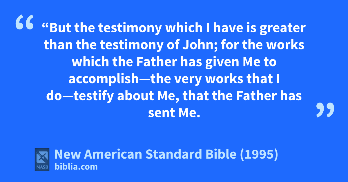 36 “But the testimony which I have is greater than the testimony of John; for athe works which the Father has given Me bto accomplish—the very works that I do—testify about Me, that the Father chas sent Me.