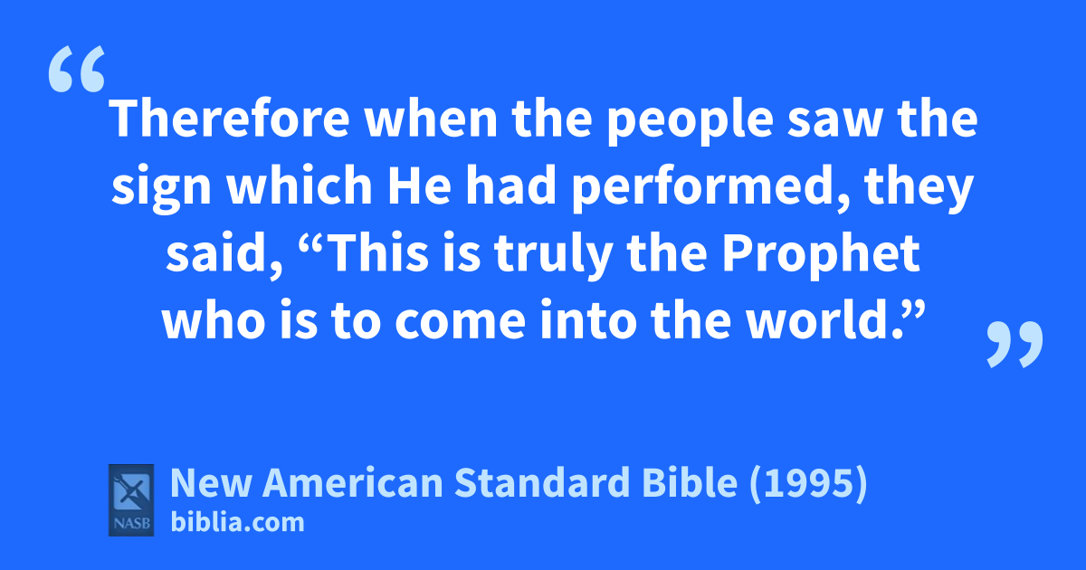 14 Therefore when the people saw the 1sign which He had performed, they said, “This is truly the aProphet who is to come into the world.”