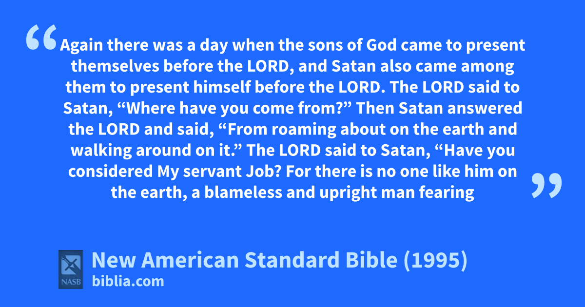 1 aAgain there was a day when the sons of God came to present themselves before the Lord, and Satan also came among them to present himself before the Lord.