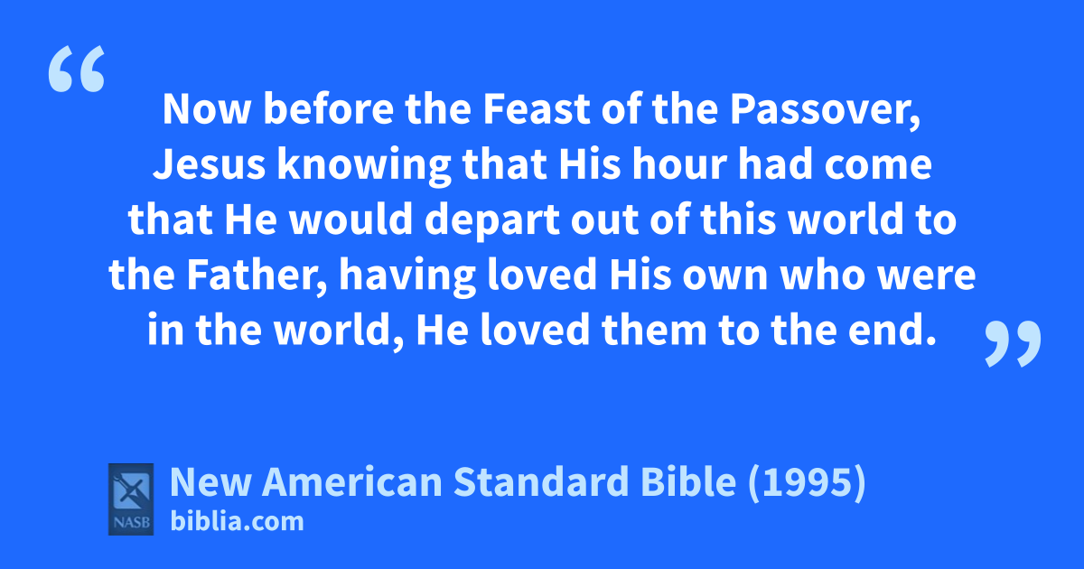 1 Now before the Feast of athe Passover, Jesus knowing that bHis hour had come that He would depart out of this world cto the Father, having loved His own who were in the world, He loved them 1to the end.