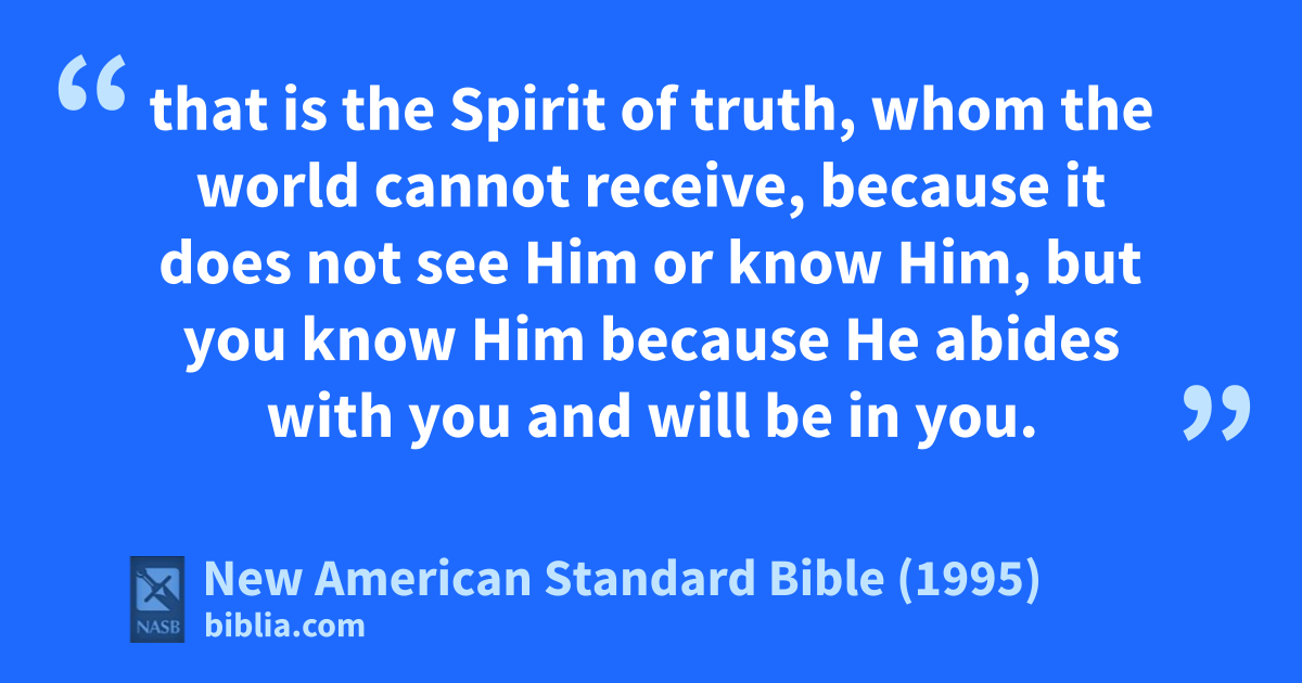 17 that is athe Spirit of truth, bwhom the world cannot receive, because it does not see Him or know Him, but you know Him because He abides with you and will be in you.