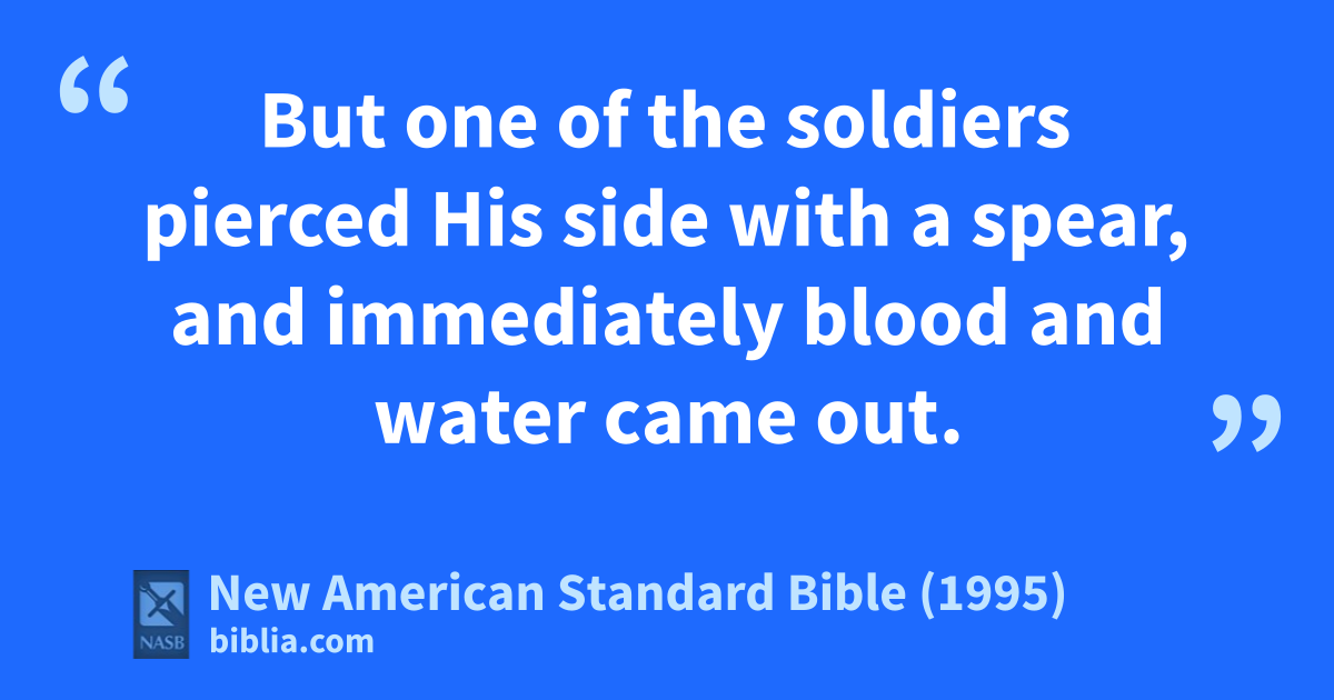 34 But one of the soldiers pierced His side with a spear, and immediately ablood and water came out.