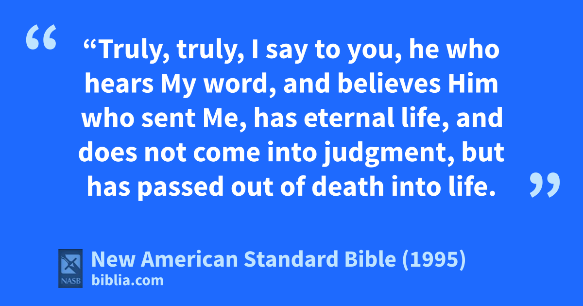24 “Truly, truly, I say to you, he who hears My word, and abelieves Him who sent Me, has eternal life, and bdoes not come into judgment, but has cpassed out of death into life.