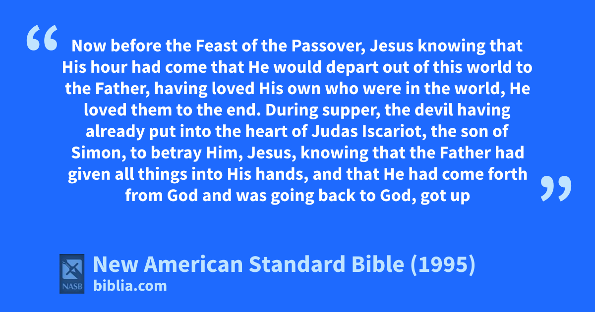 1 Now before the Feast of athe Passover, Jesus knowing that bHis hour had come that He would depart out of this world cto the Father, having loved His own who were in the world, He loved them 1to the end.