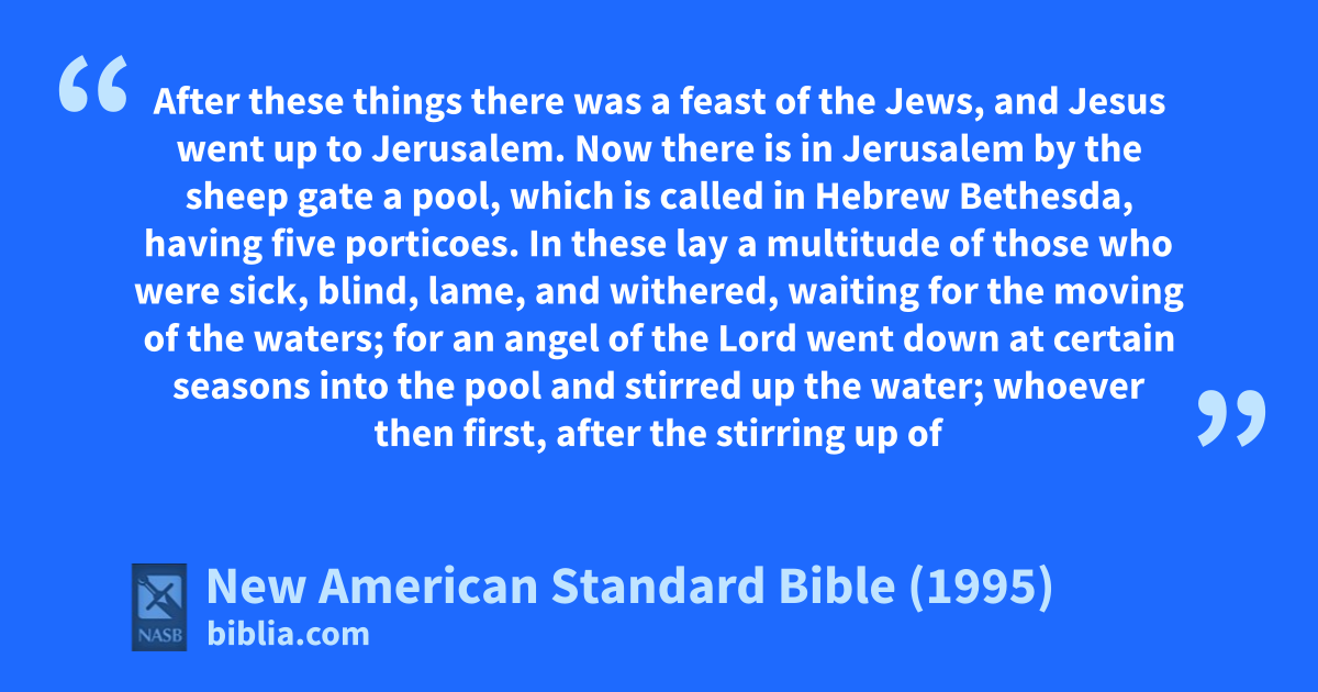 4 for an angel of the Lord went down at certain seasons into the pool and stirred up the water; whoever then first, after the stirring up of the water, stepped in was made well from whatever disease with which he was afflicted.]