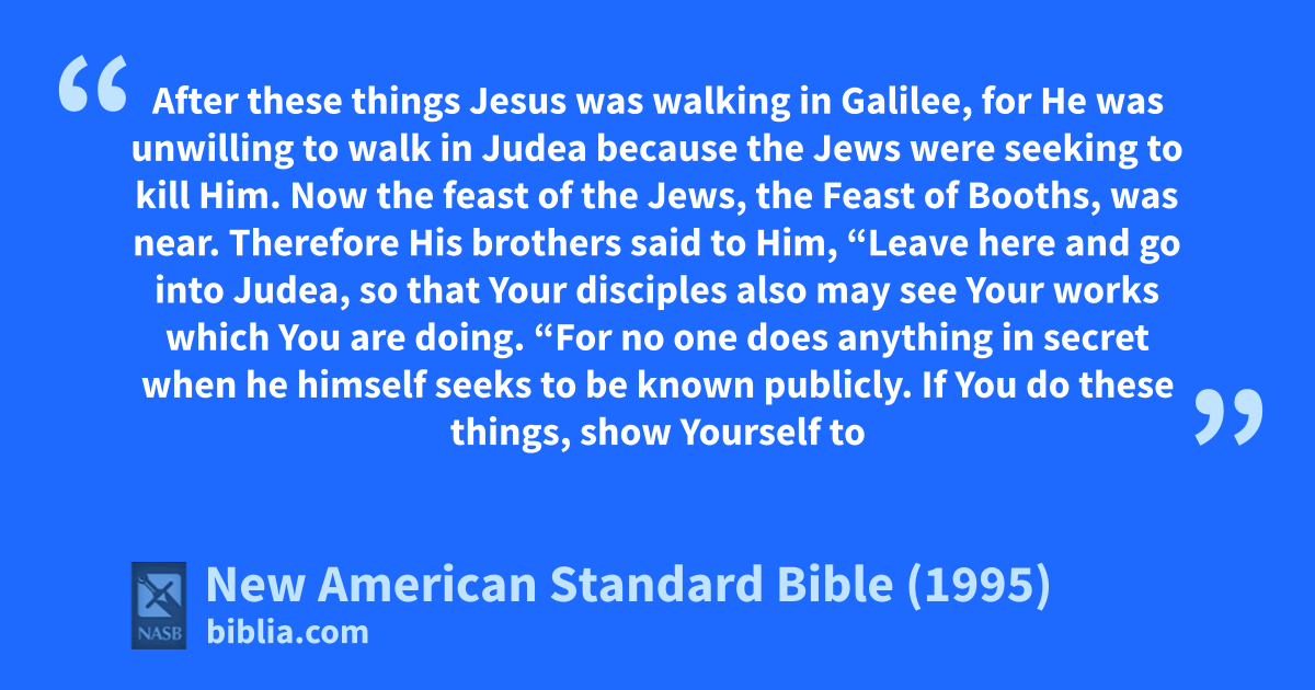 1 After these things Jesus awas walking in Galilee, for He was unwilling to walk in Judea because bthe Jews cwere seeking to kill Him.