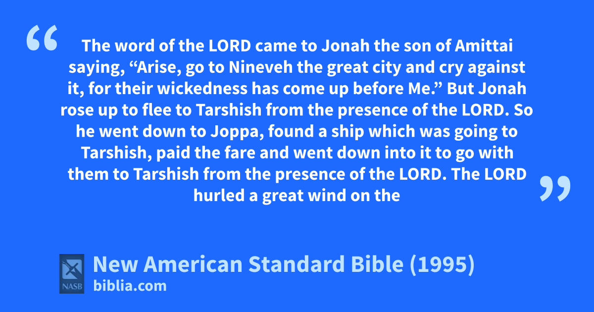 3 But Jonah rose up to flee to aTarshish bfrom the presence of the Lord. So he went down to cJoppa, found a ship which was going to Tarshish, paid the fare and went down into it to go with them to Tarshish from the presence of the Lord.
