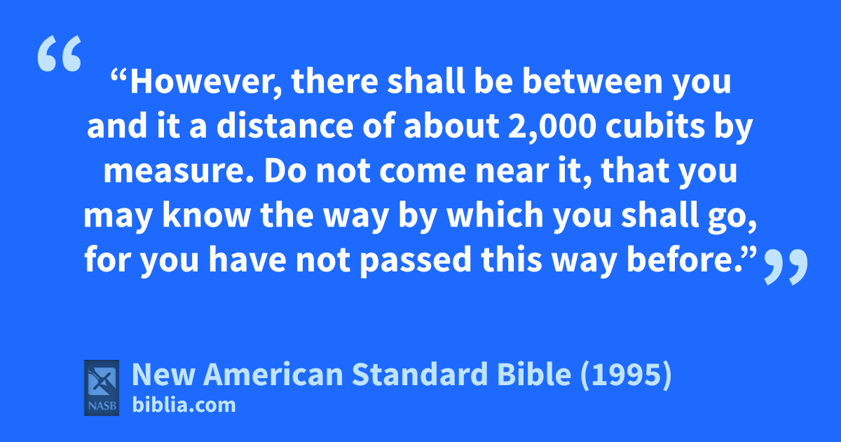4 “However, there shall be between you and it a distance of about 2,000 1cubits by measure. Do not come near it, that you may know the way by which you shall go, for you have not passed this way before.”