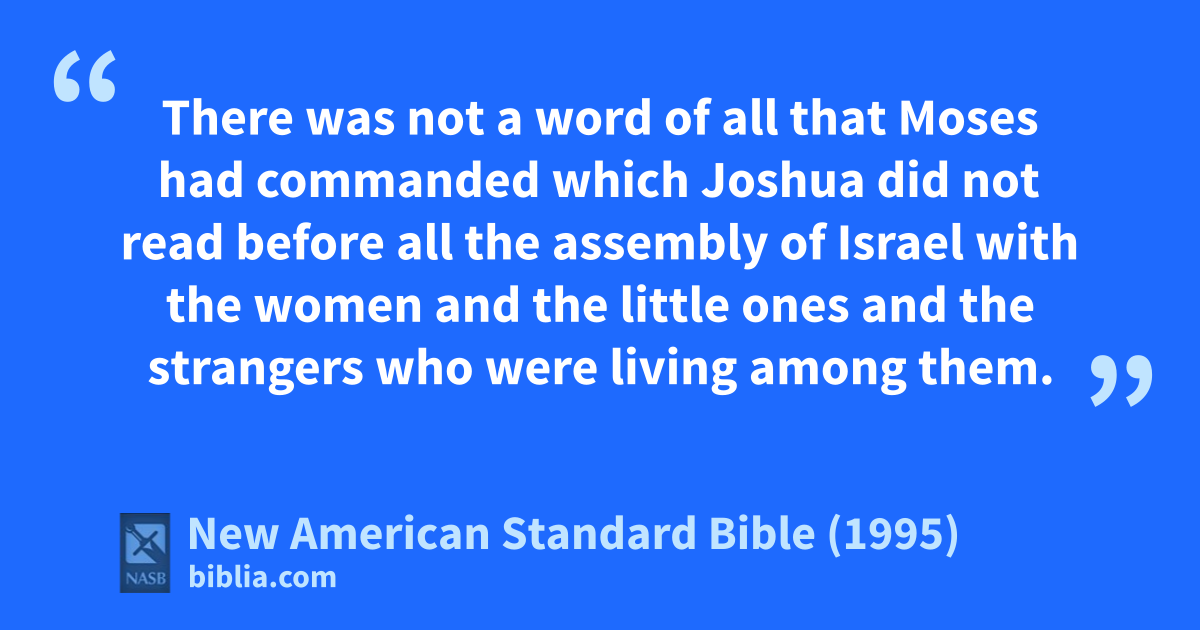 35 There was not a word of all that Moses had commanded which Joshua did not read before all the assembly of Israel awith the women and the little ones and the strangers who were 1living among them.