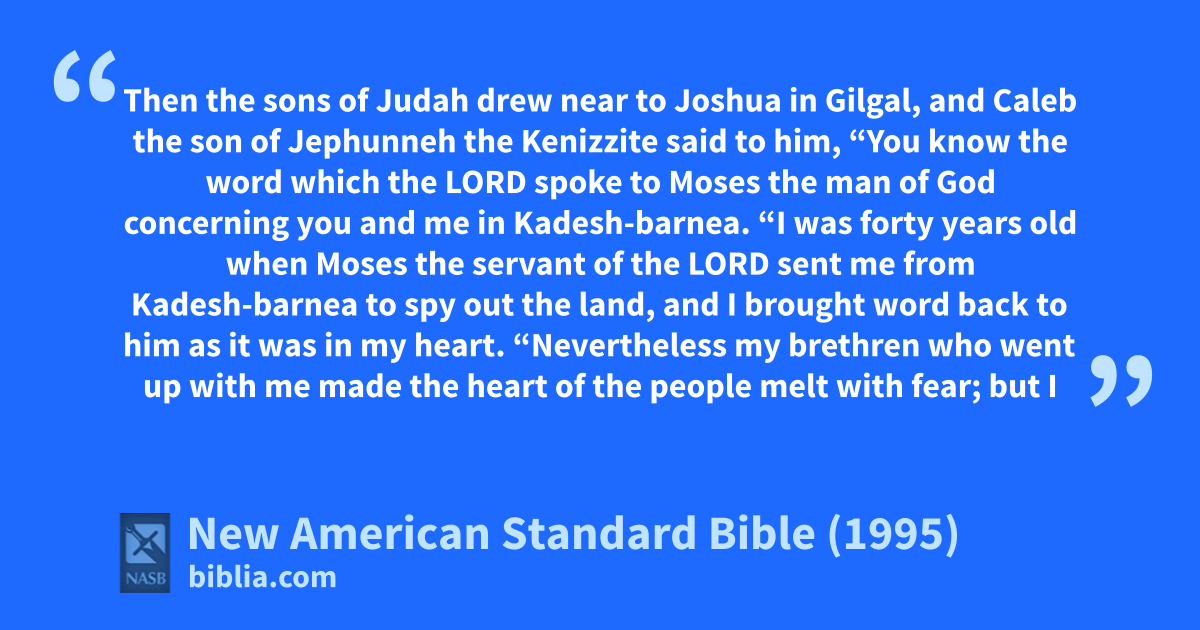 6 Then the sons of Judah drew near to Joshua in Gilgal, and aCaleb the son of Jephunneh the Kenizzite said to him, “You know the word which the Lord spoke to Moses the man of God concerning 1you and me in Kadesh-barnea.