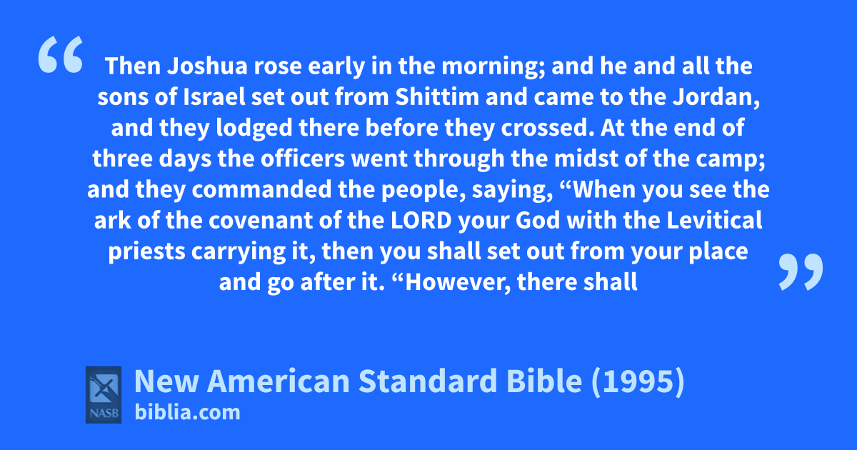 1 Then Joshua rose early in the morning; and he and all the sons of Israel set out from aShittim and came to the Jordan, and they lodged there before they crossed.