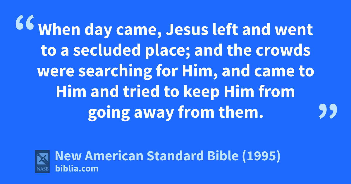 42 aWhen day came, Jesus left and went to a secluded place; and the crowds were searching for Him, and came to Him and tried to keep Him from going away from them.