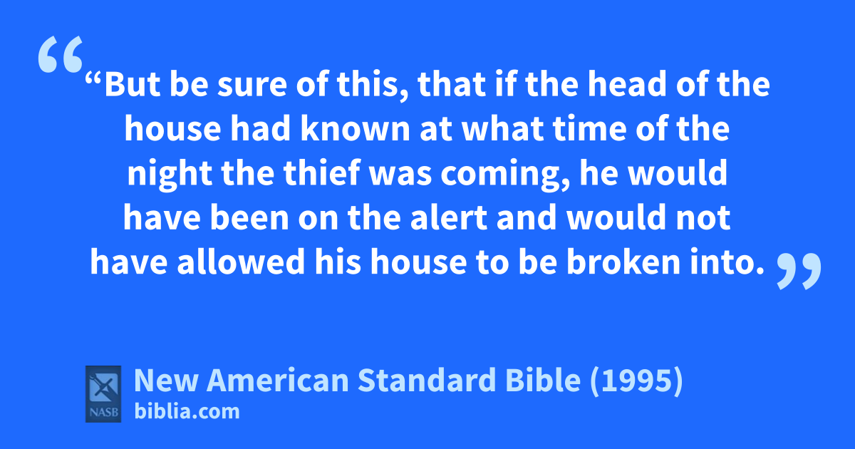 43 “But 1be sure of this, that aif the head of the house had known bat what time of the night the thief was coming, he would have been on the alert and would not have allowed his house to be 2broken into.