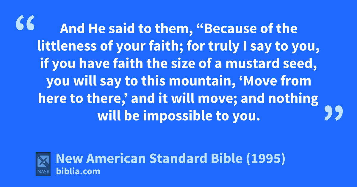 20 And He * said to them, “Because of the littleness of your faith; for truly I say to you, aif you have faith 1the size of ba mustard seed, you will say to cthis mountain, ‘Move from here to there,’ and it will move; and dnothing will be impossible to you.